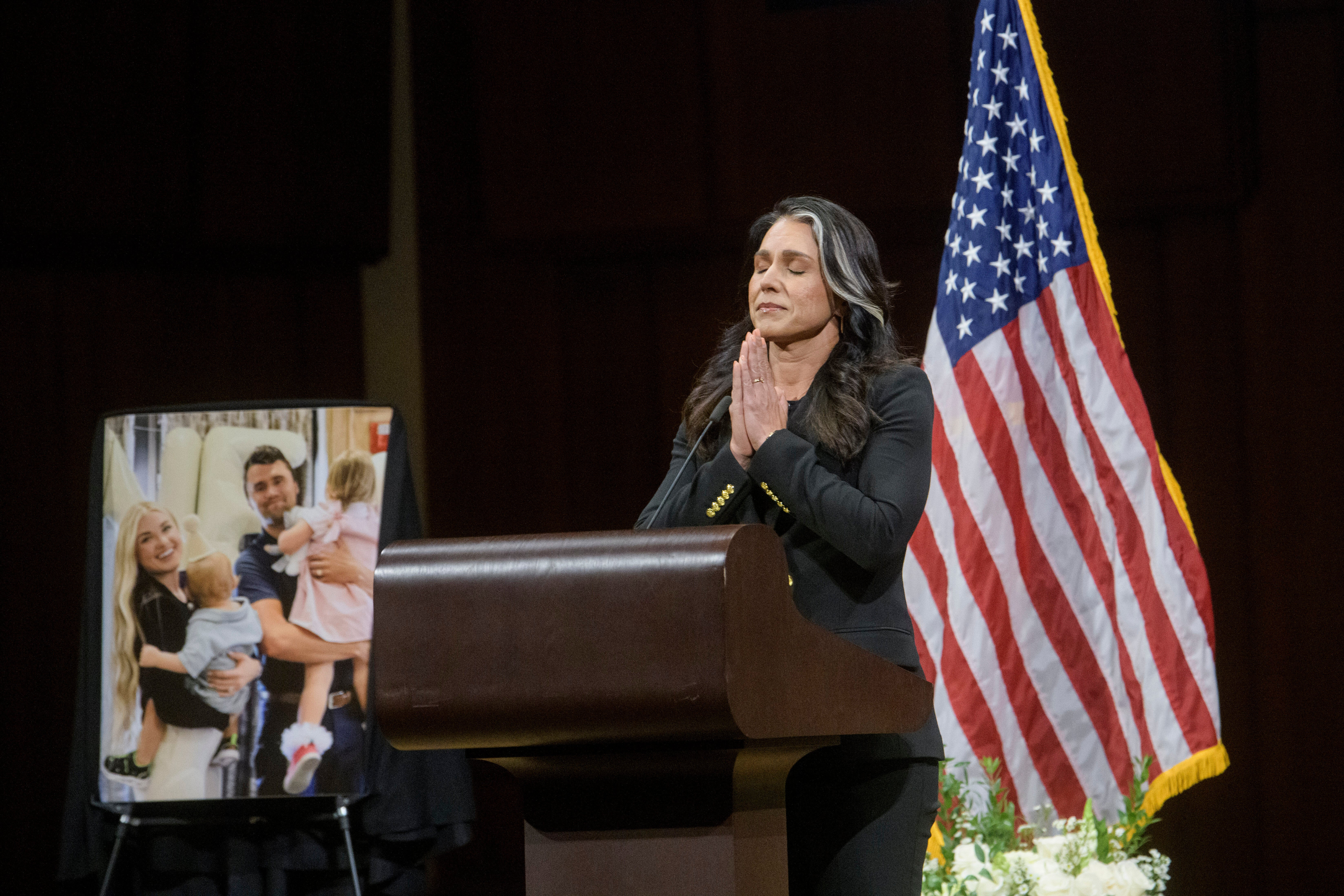In her address at Washington D.C.’s Kennedy Center, Gabbard celebrated Kirk’s passion for debate and belief in free speech, before comparing his assassination at Utah Valley University last week to the 2001 attacks on the World Trade Center in New York.