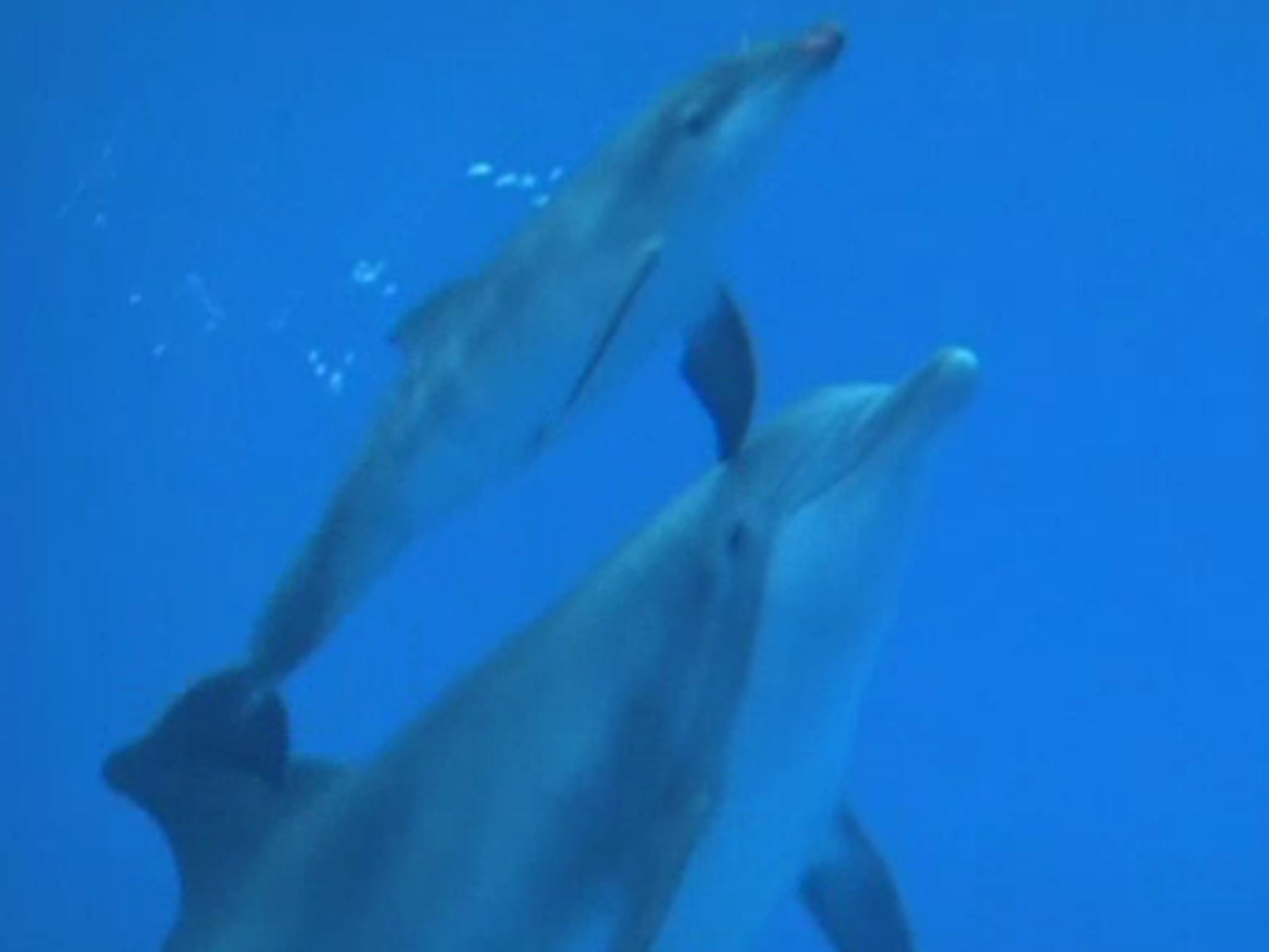 In the video the mother dolphin can be seen swimming around with her pool mate by her side as the baby emerges. The female calf swims close to her mother soon after giving birth.