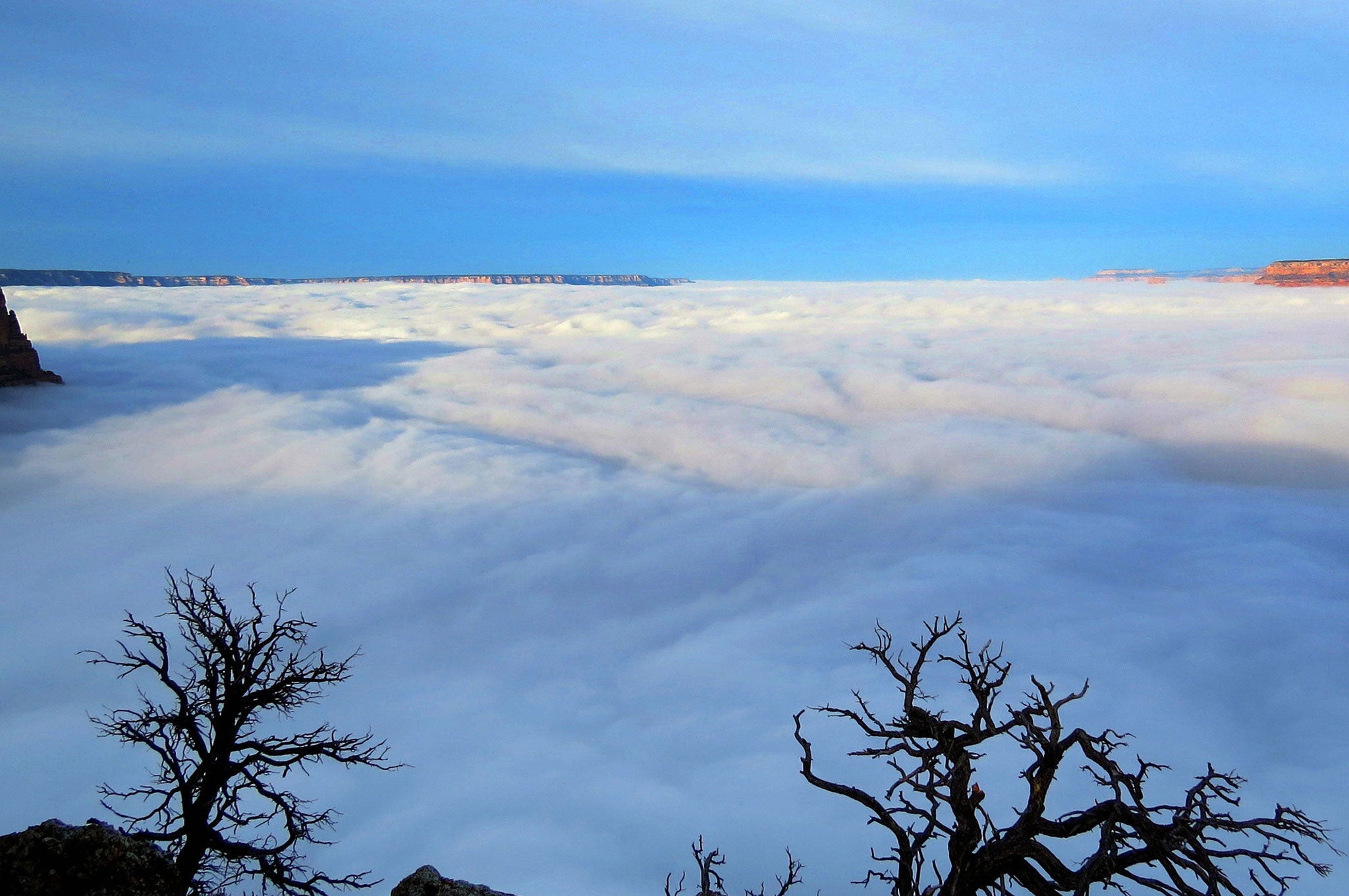 The Grand Canyon in Colorado was coated in a thick layer of cloud after warm air at the top of the canyon prevented the colder air at the bottom from rising.