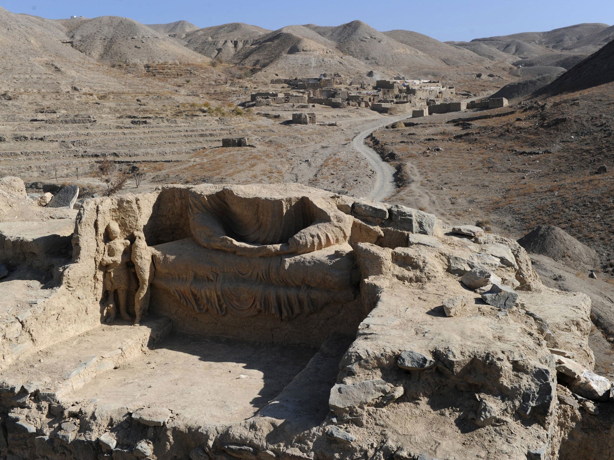 South east of Kabul lies Logar, the latest province to backslide into the clutches of insurgency and Taliban rule. Upon the region's barren landscape sits a cluster of rocky foothills known collectively as Mes Aynak. To the Afghan and Chinese governments, Mes Aynak is the site of massive copper reserves, the world's second largest, with an estimated worth exceeding $100bn (£66bn). To others, it is a site of enormous historical importance, a settlement dating back to the Bronze Age which includes a 100-acre ancient monastery complex, and a mere 10 per cent of which has been excavated. Its destruction would see Afghan society robbed of a unique link to its rich heritage.