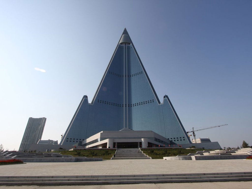 North Korea began construction of the building with the aim of communicating an image of wealth and prosperity to the outside world. Instead it has been widely mocked, ridiculed and criticised.