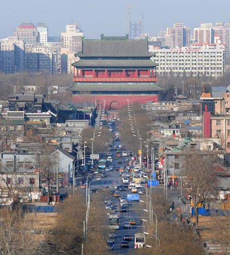 A crowd had gathered around the Drum Tower, in bustling central Beijing, which had been closed off by police.