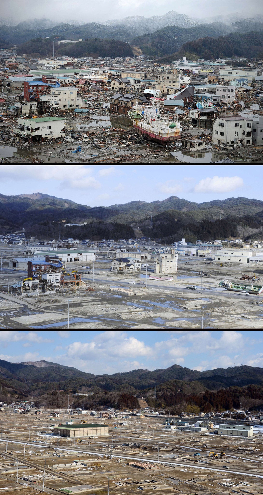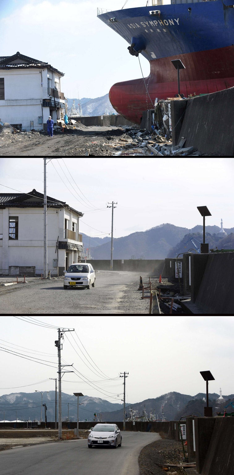 Here are a selection of images showing how areas affected disasters have recovered over the past two years.