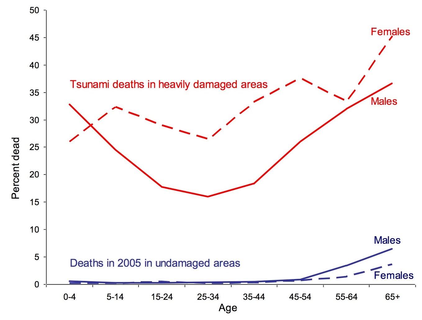 In our research, we estimated that in communities where the tsunami cost lives, fertility increased by almost three-quarters of a child in the five years afterwards. This is a huge impact and you can see the effects today, with more babies and young children in the region relative to teenagers and older adults.