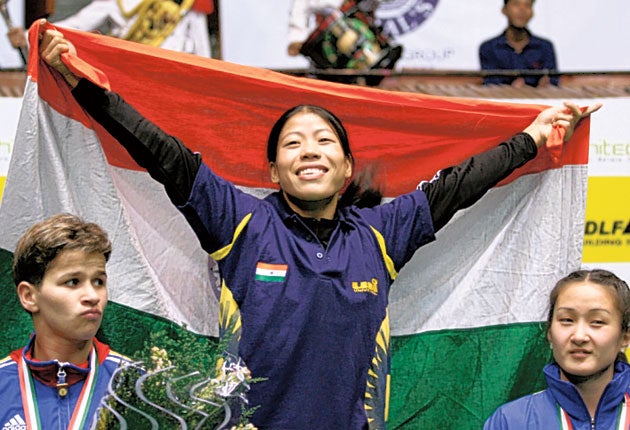 Yet even here Mrs Kom's achievements are exceptional. In addition to the bag of national titles she has collected, the 28-year-old has won the world championship five times, come runner-up once and won the Asian women's boxing championship on two occasions. She was part of the group that lobbied successfully for women's boxing to be included in the London Olympics of 2012, the first time it will feature in the games.