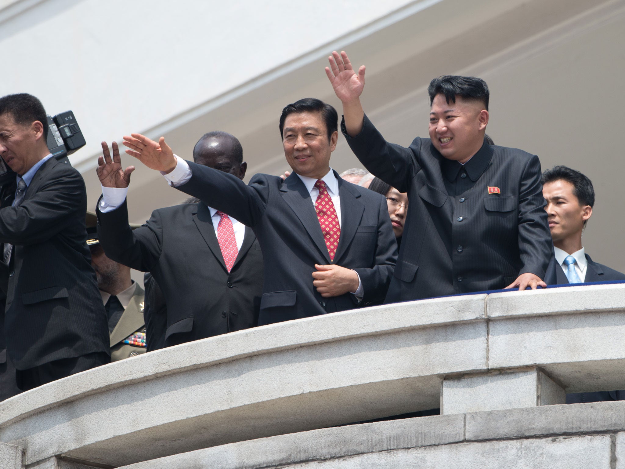 Leader Kim Jong Un overlooked a sea of spectators mobilized in Kim Il Sung Square to cheer and wave flags whilst saluting his troops from a review stand. He was flanked by senior military officials dressed in olive green and white uniforms laden with medals. As fighter jets screamed overhead, a relaxed looking Kim smiled and spoke with China's vice president. China fought alongside North Korea during the war and is Pyongyang's only major ally and a crucial source of economic aid. Kim did not make a speech.