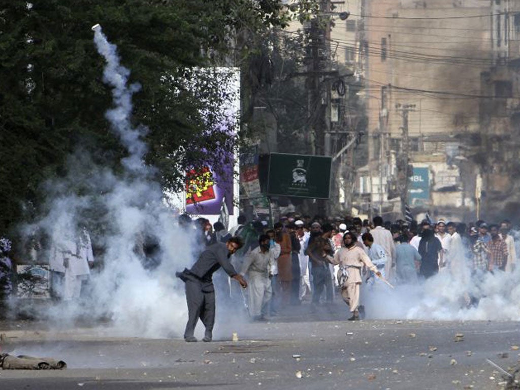 Leaderless mobs fought police all day in cities across the country, with the worst violence in Peshawar in the north west and in the southern port of Karachi. Protesters burned buildings and trashed shops and vehicles.