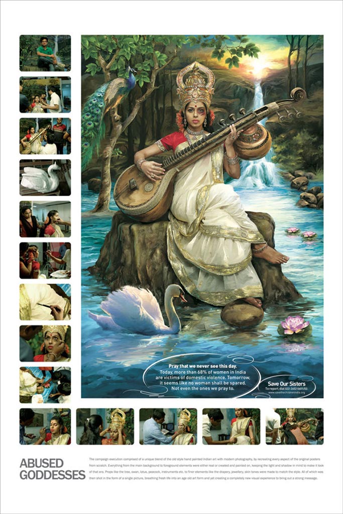 Shocking images depict Hindu goddesses as victims of abuse in domestic violence campaign
