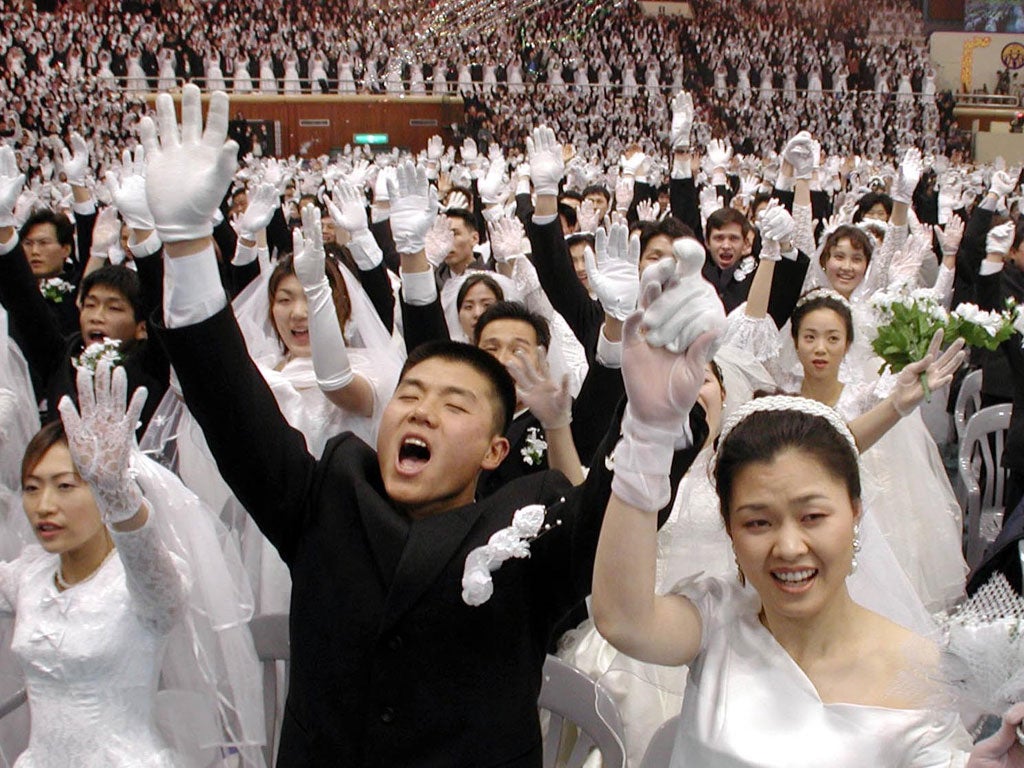 Yesterday the church said that 13,000 people, including 3,000 Japanese, had already visited the memorial chapel. Famous for the mass weddings in which thousands of ready-made, mixed-nationality couples from all over the world were spliced simultaneously, the Holy Spirit Association for the Unification of World Christianity – the term the church prefers to "Moonies" – will not fail to give its "True Father" a worthy send-off.