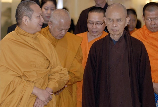 Thich Nhat Hanh, who fled into exile in France four decades ago and who has long battled for greater religious rights in his motherland, said his followers in Vietnam were being regularly abused. "Our country does not yet have true religious freedom and the government tightly controls the Buddhist church machinery," Mr Nhat Hanh wrote in a letter to supporters. "The Buddhist church is helpless, unable to protect its own children. This is a truth clearly seen by everyone."