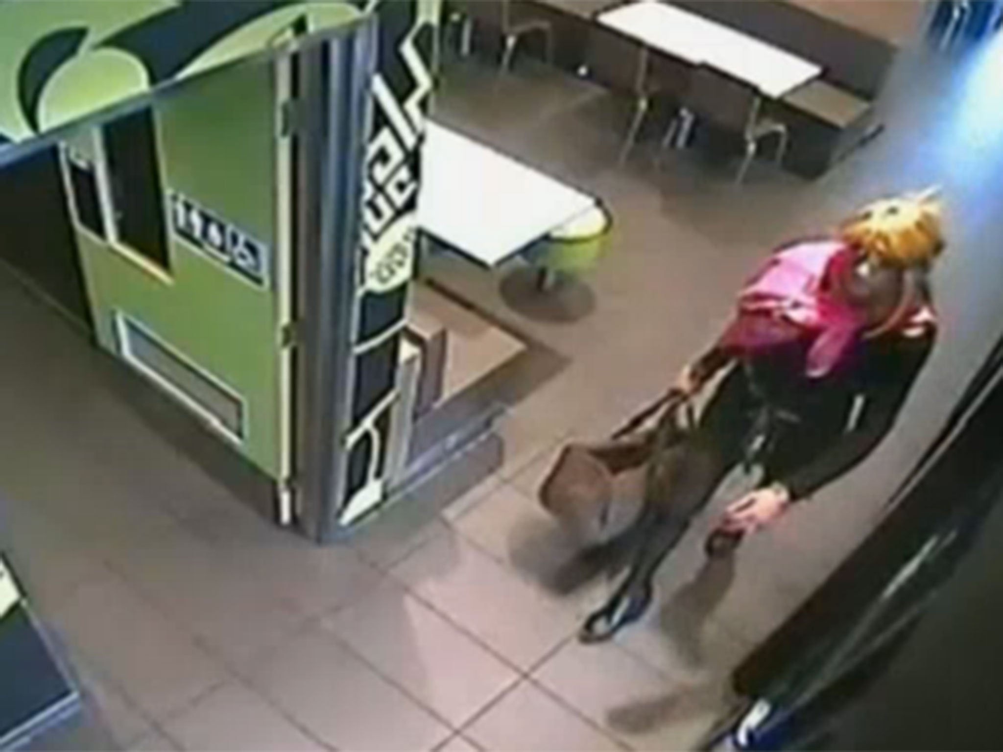 Australian police have now unveiled surreal CCTV of the moment a cross-dressing robber help up a fast food restaurant in Melbourne on Sunday morning, threatening to blow the place up.