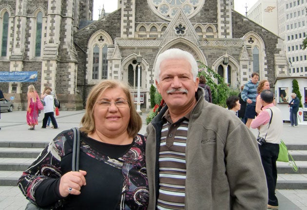 She beams out of every one of the family photographs arranged on a cabinet in her living-room in Christchurch. The most recent, snapped on 19 February, shows her in Cathedral Square, in the heart of the city, with her husband of 35 years, Maan Alkaisi.