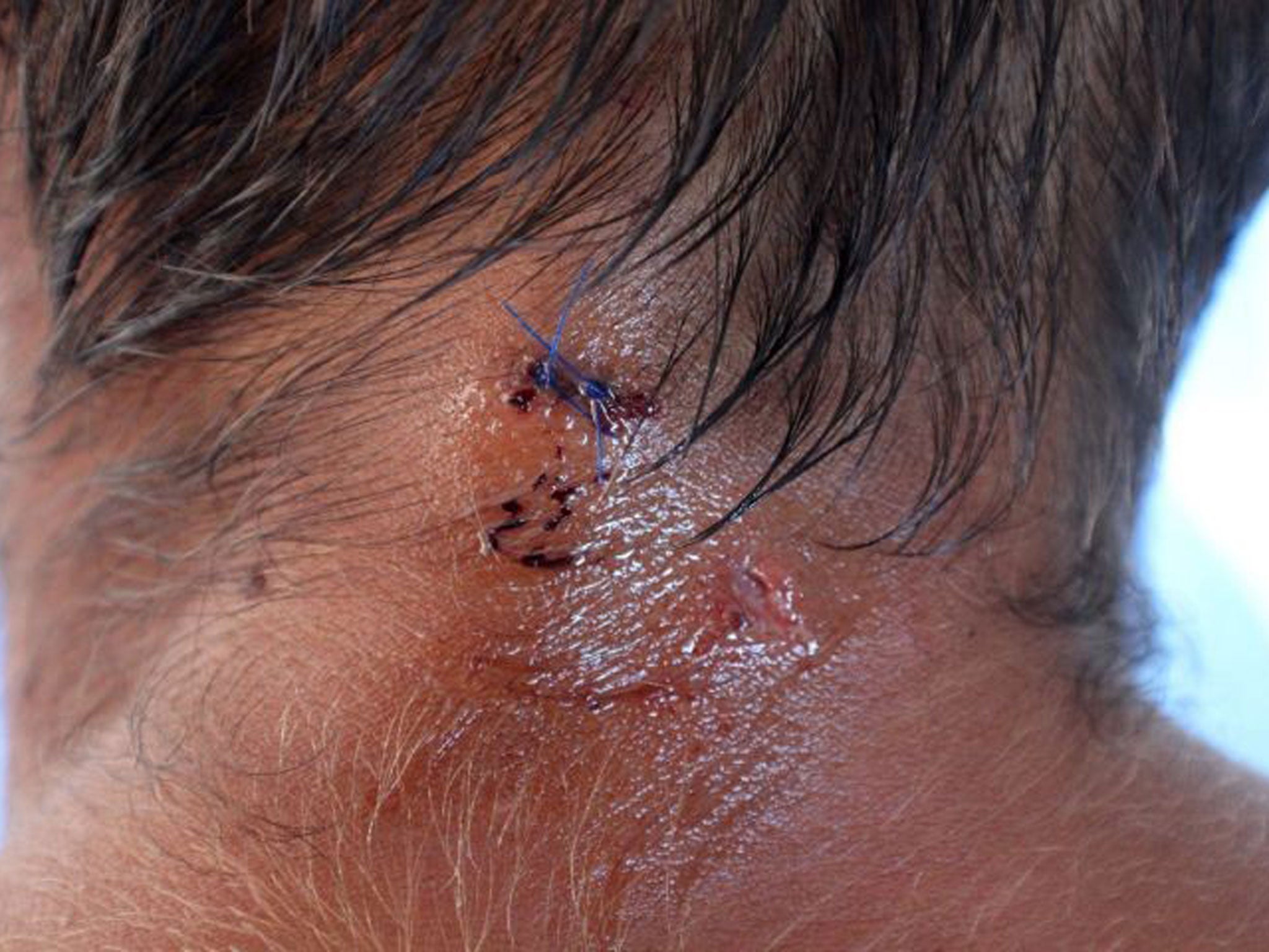 Despite this the animal still managed to inflict puncture wounds on his head and neck.