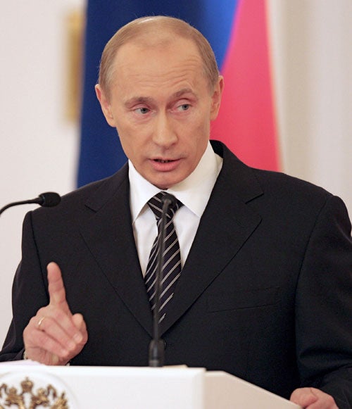 The speech was broadcast live on Russian television. Mr Putin was addressing the State Council, an influential gathering of the country's elite, including Dmitry Medvedev, the man virtually guaranteed to be Russia's next president. Also present was the Chelsea owner, Roman Abramovich, Russia's richest man, attending in his capacity as governor of Russia's Chukotka region.