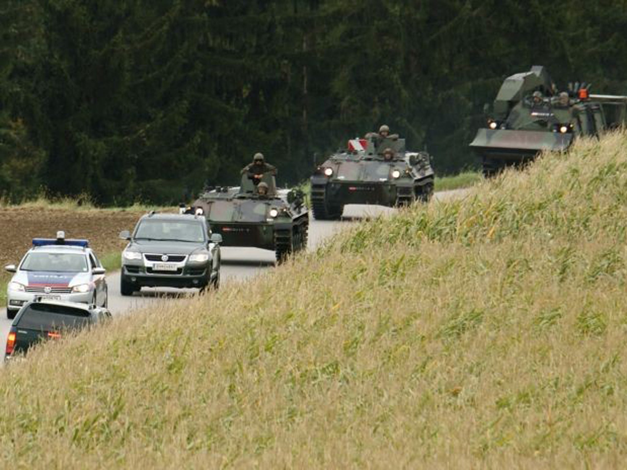 During the 12-hour stand-off, he shot sporadically at heavily armed police. Police said he fired the last shot about an hour before helmeted officers wearing body armour and carrying assault rifles piled into three Austrian army tanks and moved in. More than 100 police officers cordoned off the area.