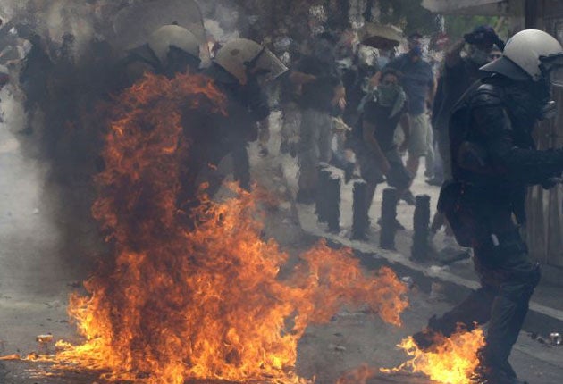The clashes came at the start of a two-day general strike called by unions furious that the government's new austerity programme will slap taxes on minimum wage earners and other struggling Greeks. The measures come on top of other spending cuts and tax rises that have sent the Greek unemployment rate soaring to over 16%.
