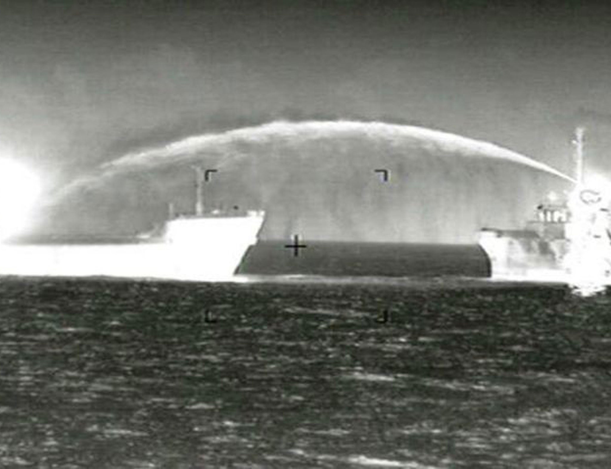 Firefighting boats had to be called in to put out the flames and the ship was being towed to the Sicilian port of Syracuse where the crew members were arrested.