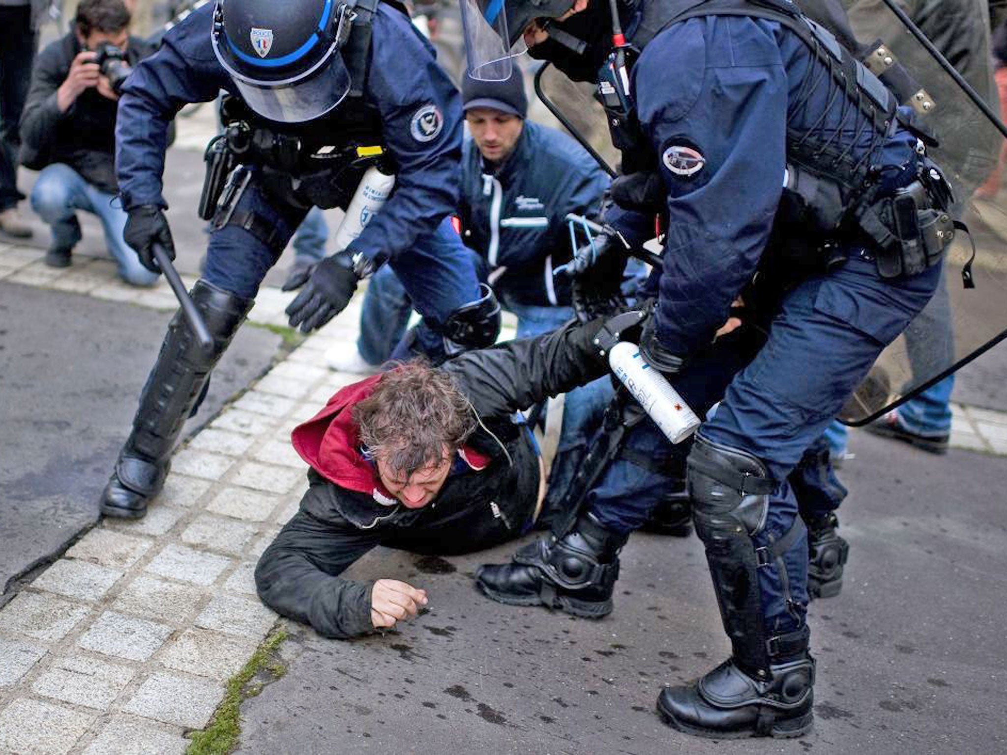 The confrontations in the National Assembly were provoked by a speech by a centre-right parliamentarian complaining about police brutality in suppressing a protest near the Invalides in Paris. Marc Le Fur said he had seen a “young woman being dragged by her hair” by three riot policemen.