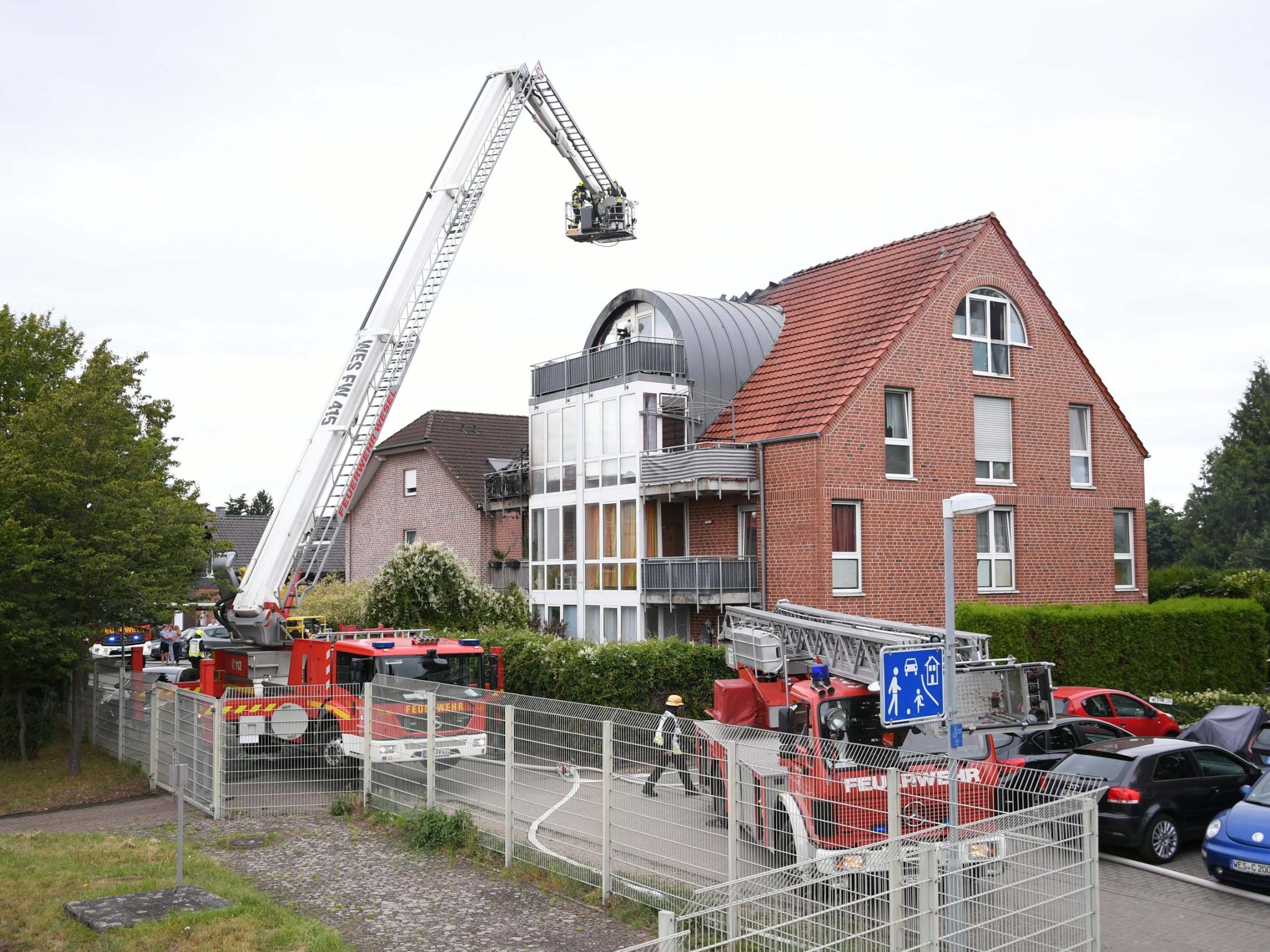 The roof of the apartment building in the town of Wesel, in the state of North-Rhine Westphalia, caught fire after the microlight plane crashed into it, a police spokesperson said.