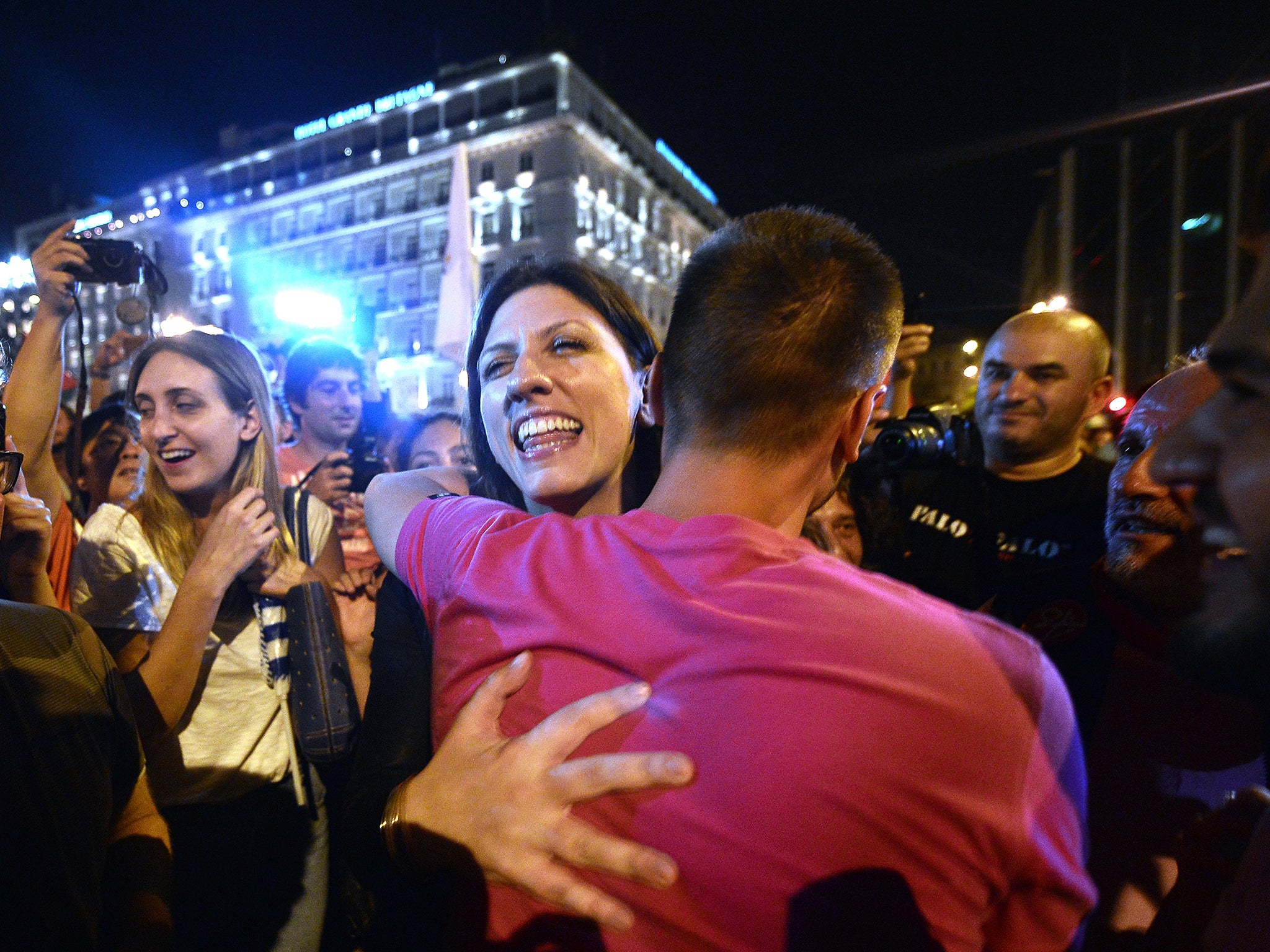 With 61 percent of voters rejecting the latest deal offered by European creditors - a bailout offer that Syriza did not agree with - the Greek parliament's president and Syriza party member, Zoe Konstantopoulou, walked out into Syntagma Square to join in the celebrations with the masses of "No" supporters.