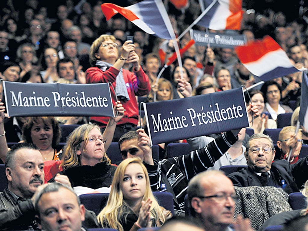 At present, Mr Hollande's first-round poll score is between 27to 30 per cent; Mr Sarkozy is on 22 to 23 per cent; Ms Le Pen between 18 and 21 per cent; and the centrist Mr Bayrou at 13 to 14 per cent.