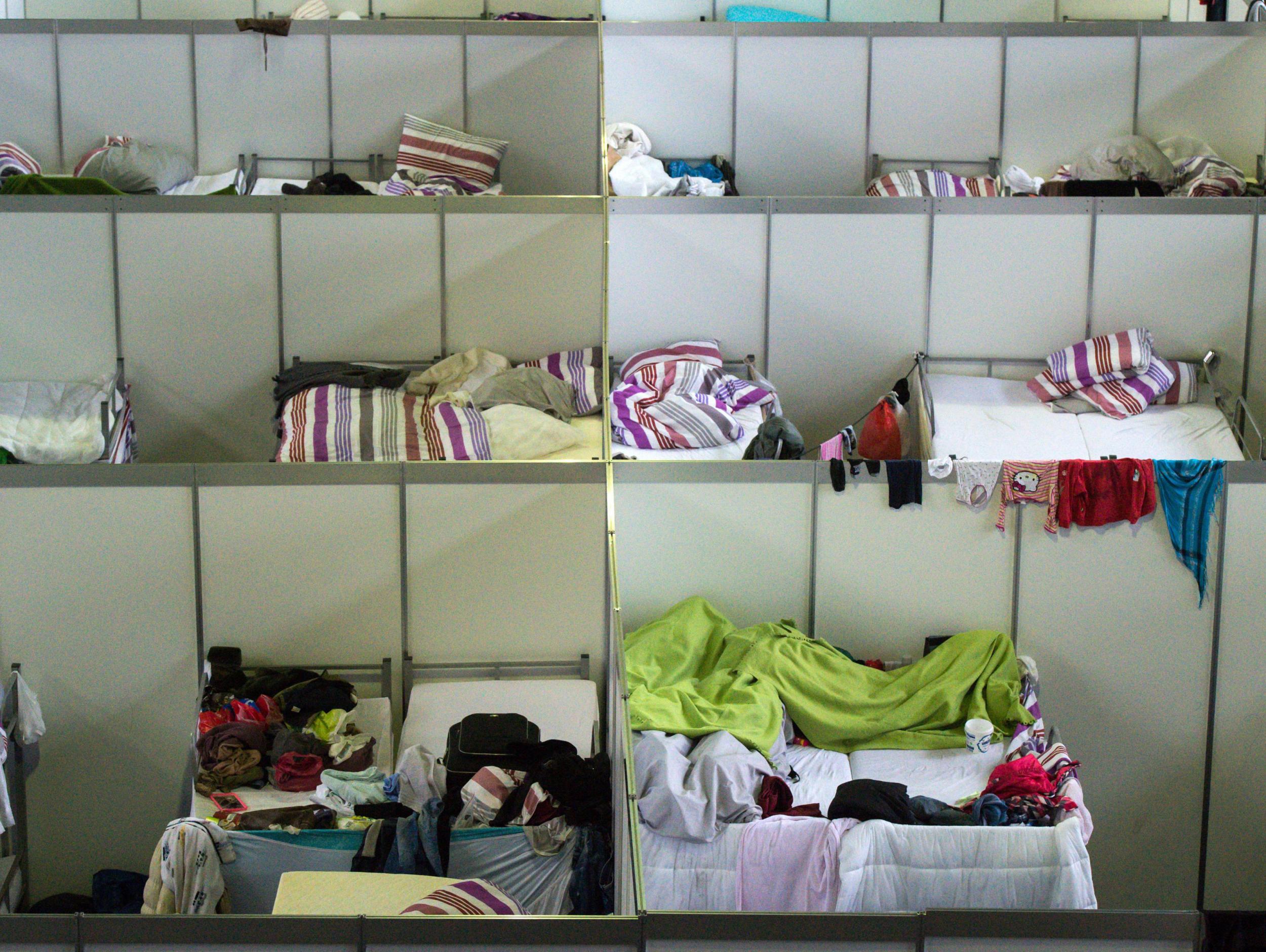 He sleeps on a bunk bed sharing a makeshift partitioned space in the hangar with 12 others. There are now more portaloos and there are buses to take them to showers in the local sports centres every morning. But it’s noisy and there is no privacy. He hangs around a lot, avoiding trouble and doing his German homework.