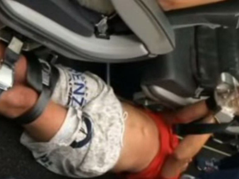 Video footage shows the man being forcibly restrained by at least four fellow passengers after an alleged drunken outburst