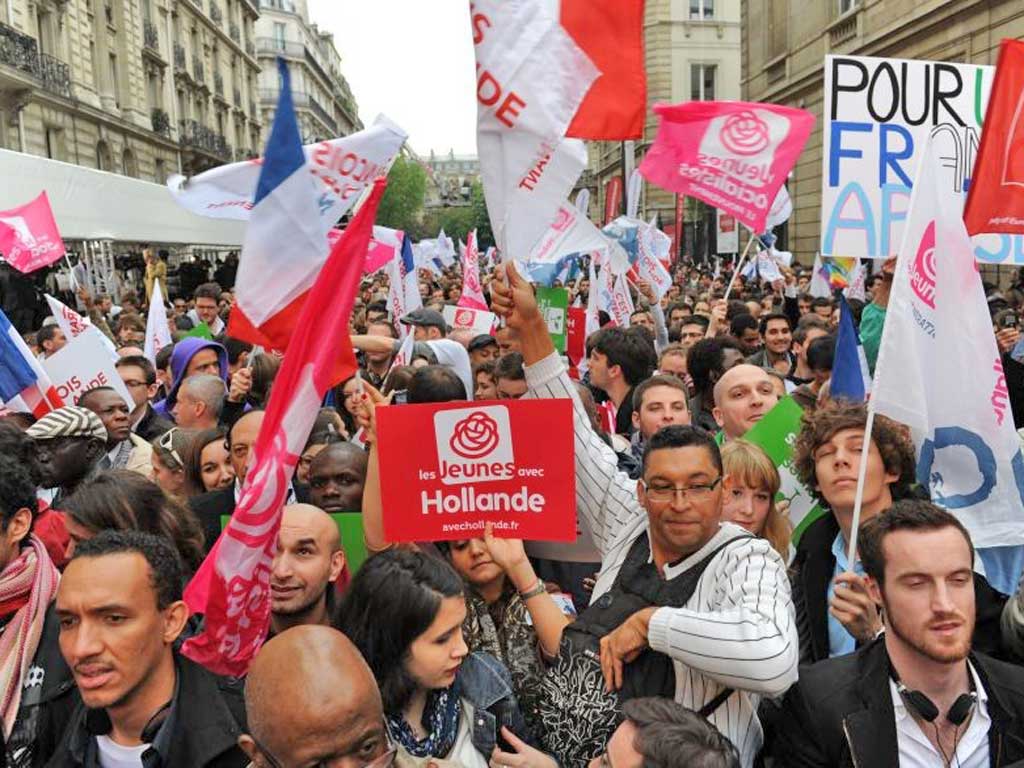 Exuberant, diverse crowds filled the Place de la Bastille, the iconic plaza of the French Revolution, to fete Hollande's victory, waving French, European and labor union flags and climbing its central column. Leftists are overjoyed to have one of their own in power for the first time since Socialist Francois Mitterrand was president from 1981 to 1995.