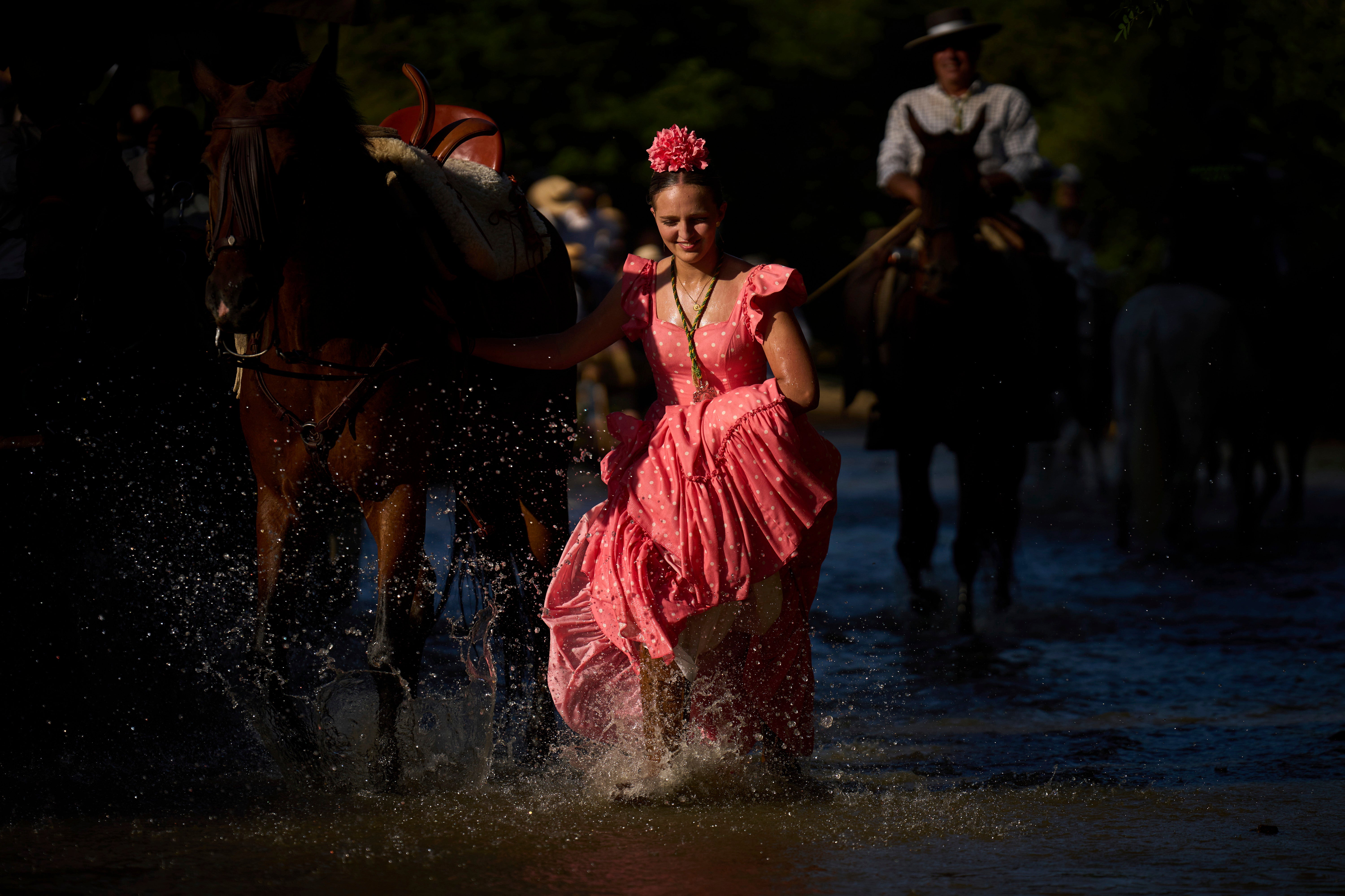 Pilgrims, their faces and vibrant flamenco dresses coated in dust, congregated around an ox-driven carriage carrying the icon of the Virgin Mary. They had journeyed for nearly 12 hours on foot, horseback, and wagon, traversing the rugged dirt roads to reach this sacred destination.