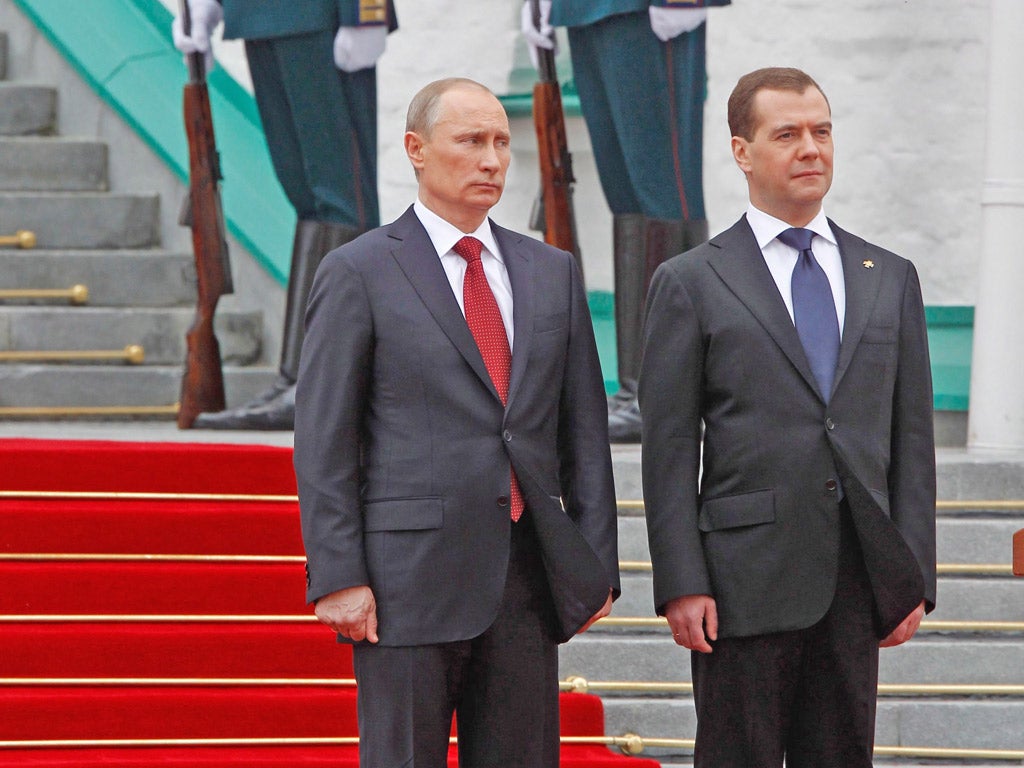 A day after a huge rally descended into violent clashes and hundreds of arrests, the police were taking no chances and blocked off all the roads down which Mr Putin's cortege would travel, and the whole area around the Kremlin. The limousine, flanked by half a dozen motorcycle outriders, glided towards the Kremlin through eerily deserted streets.