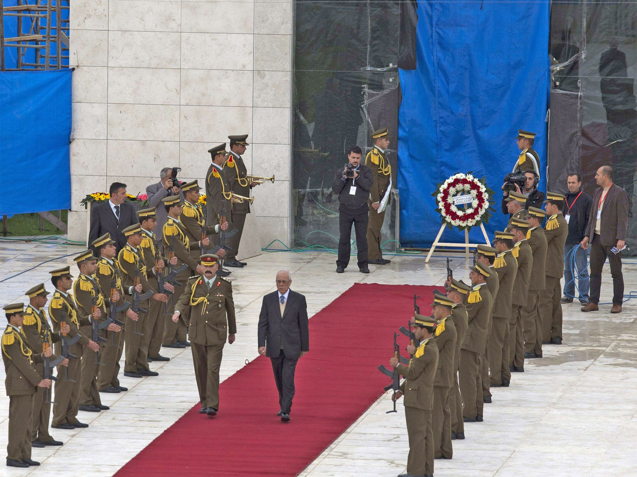 Experts decided they could take the necessary samples without moving his remains. They were re-covered and then Palestinian dignitaries led by Prime Minister Salam Fayyad held a simple wreath-laying ceremony.