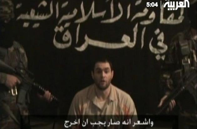 The newly released video, entitled Intihar – Arabic for suicide – shows a man wearing a football shirt, identified as Jason in a statement, which appears on screen in Arabic and is signed, "The Shia Islamic Resistance in Iraq". It accuses the British Government of neglecting the hostages by failing to respond to messages from the kidnappers and their captives and ignoring warnings about the men's psychological trauma. "This procrastination and foot-dragging and lack of seriousness on the part of the British Government has prolonged their psychological deterioration, pushing one of them, Jason, to commit suicide on 25/5/2008," the statement says. "He surprised our brethren, who were taking care of him, with his suicide."