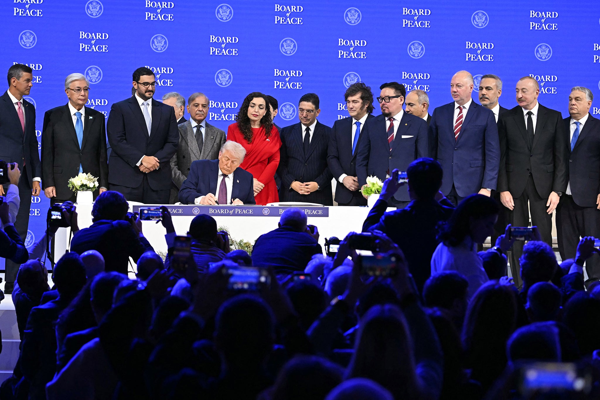 “When America booms, the entire world booms,” the president told the gathering. “This board has the chance to be one of the most consequential bodies ever created and it’s my enormous honour to serve as its chairman.”