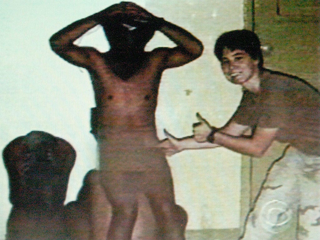 Lynndie England was one of several members of the military police who appeared in images that showed the torture and abuse of prisoners at the prison in 2004. Among the photographs were images of naked prisoners being intimidated by dogs, dragged around on a leash, piled into a human pyramid and hooded and attached to wires.