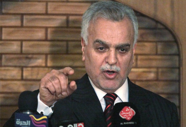 "I did not veto the whole law. I have vetoed the first article of the law and I think parliament will understand my stance," Mr Hashemi, below, told a news conference. "My suggested amendment is to give justice to all Iraqis living abroad, not just Iraqis displaced in neighbouring countries."