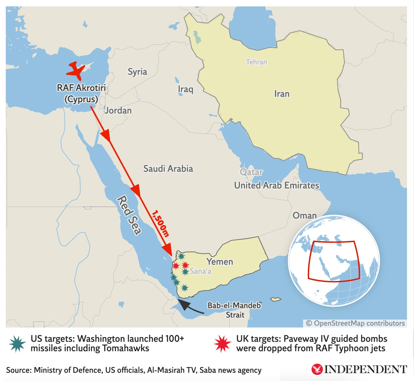 “The other location struck by our aircraft was the airfield at Abbs. Intelligence has shown that it has been used to launch both cruise missiles and drones over the Red Sea. Several key targets at the airfield were identified and prosecuted by our aircraft.”