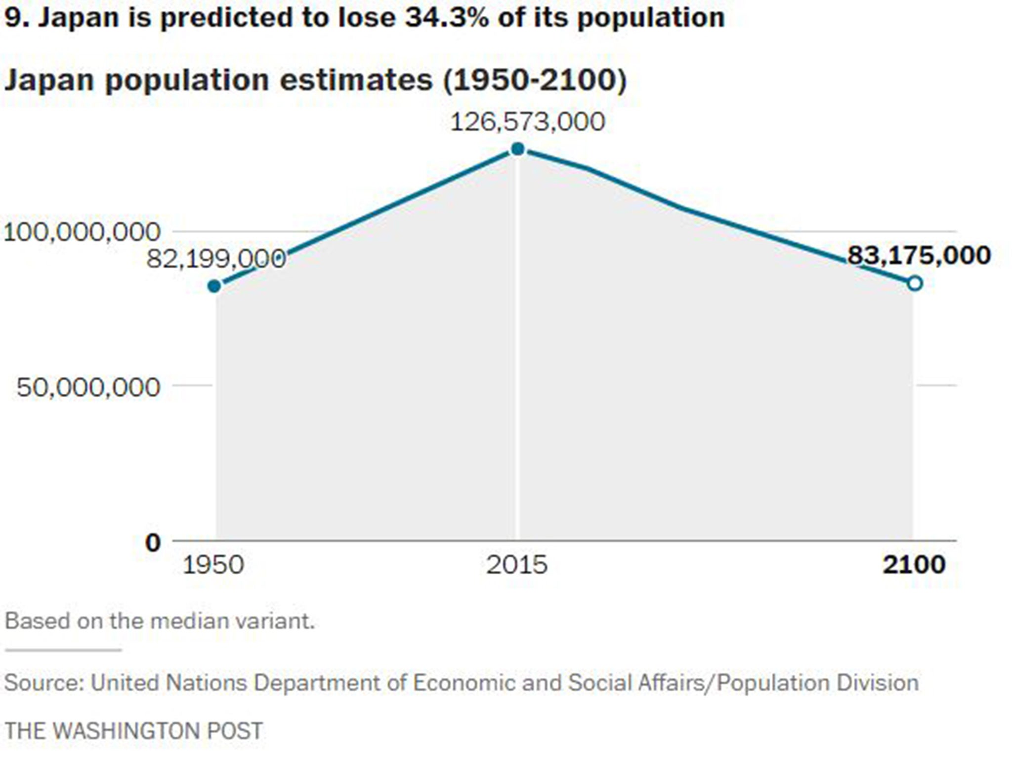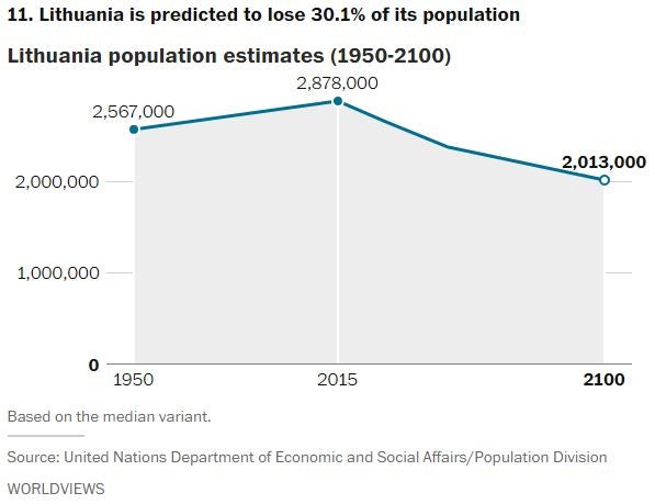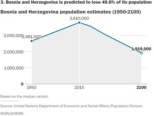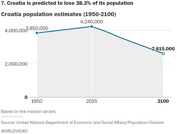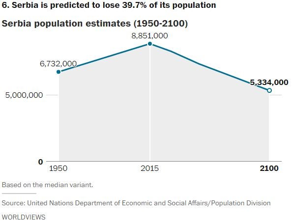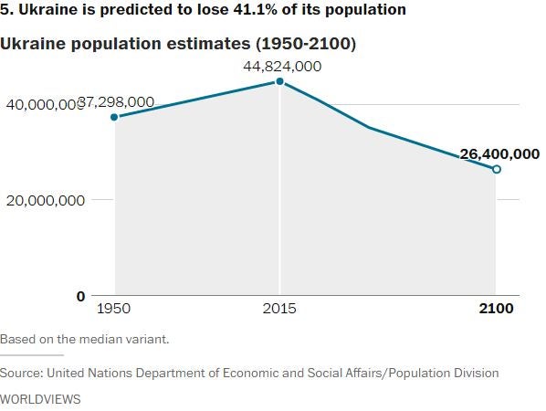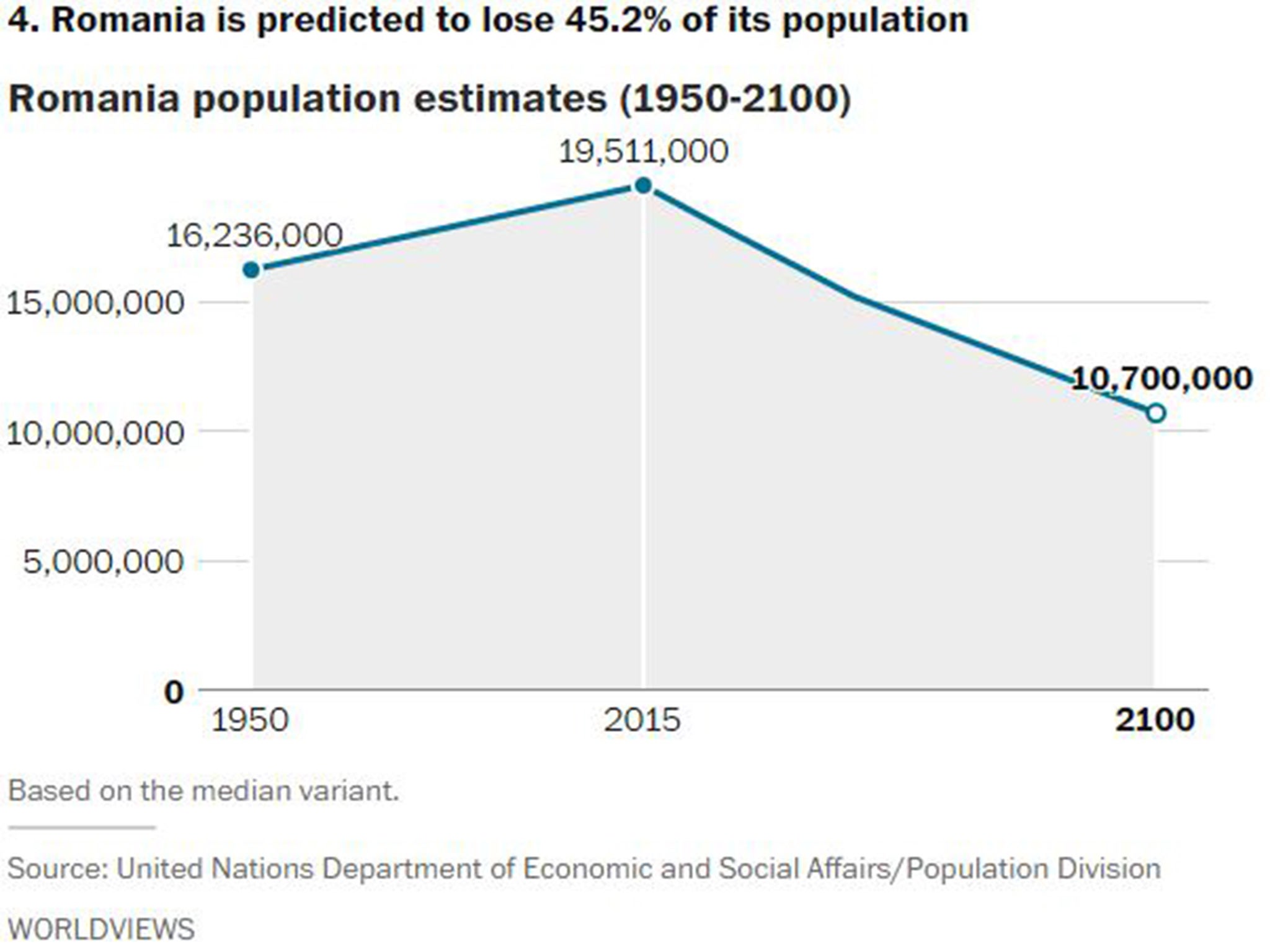 In fact, the latest U.N. population report says 48 countries around the world are expected to see their populations decline by 2050. It also identifies 11 countries that, for reasons such as declining birth rates and emigration, are expected to lose more than 15 percent of their population in the coming decades.