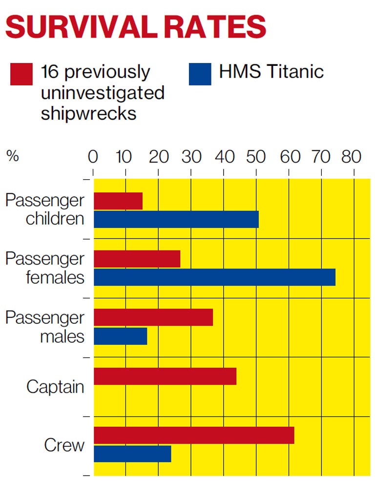 Nevertheless, Dr Elinder and his colleague Oscar Erixon found when they surveyed a subset of 16 shipwrecks that had not been analysed previously, that women and children were at a significant disadvantage to men, which fits into the general pattern of poorer survival chances of women and children in natural disasters, they said.