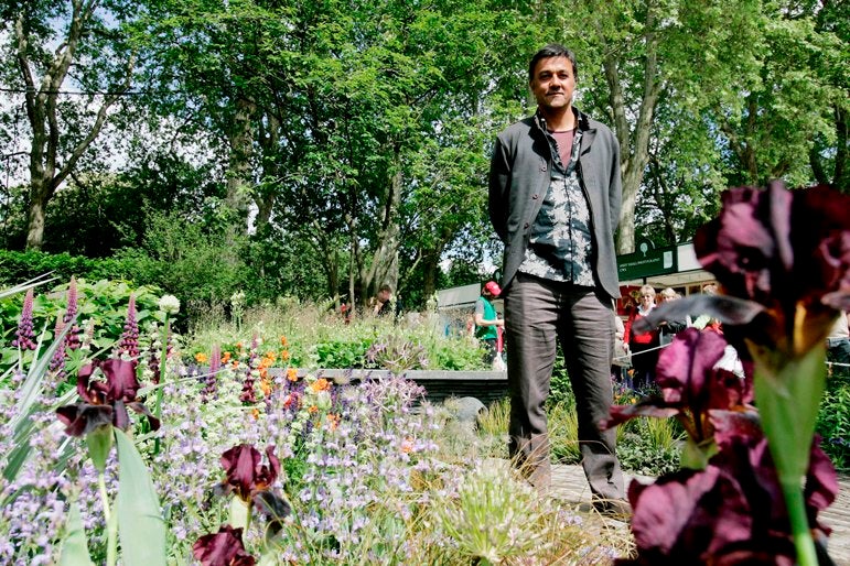 Cleve West, The Independent's Urban Gardener columnist, in his gold medal-winning Bupa garden at the Chelsea Flower Show. The design will be moved to a nursing home after the show.