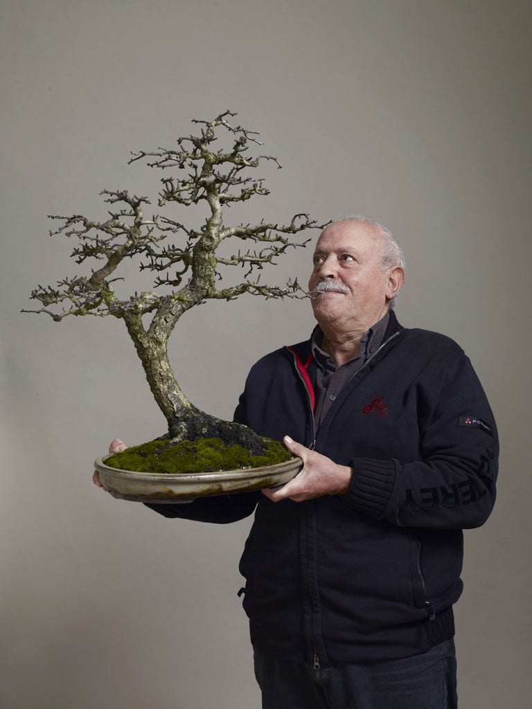 Volgano, a retired hairdresser from Poole, became fascinated with bonsai when he bought his wife a tree for Christmas in 1990. It promptly died. "I ended up with a corpse and didn't know what to do," he says. "A friend's daughter was editor of 'Your Garden' and helped us find a bonsai club in Bournemouth." Volgano, 74, now has 44 trees – though that is well down from a peak of 250. He comes originally from San Gimignano in Tuscany, and says he has been artistic all his life, "styling women's hair. Bonsai trees are similar: in a way, I use the same technique to style them. The fantasy is in my mind. You have to see what a face produces; you have to look at a tree as if it were a person."