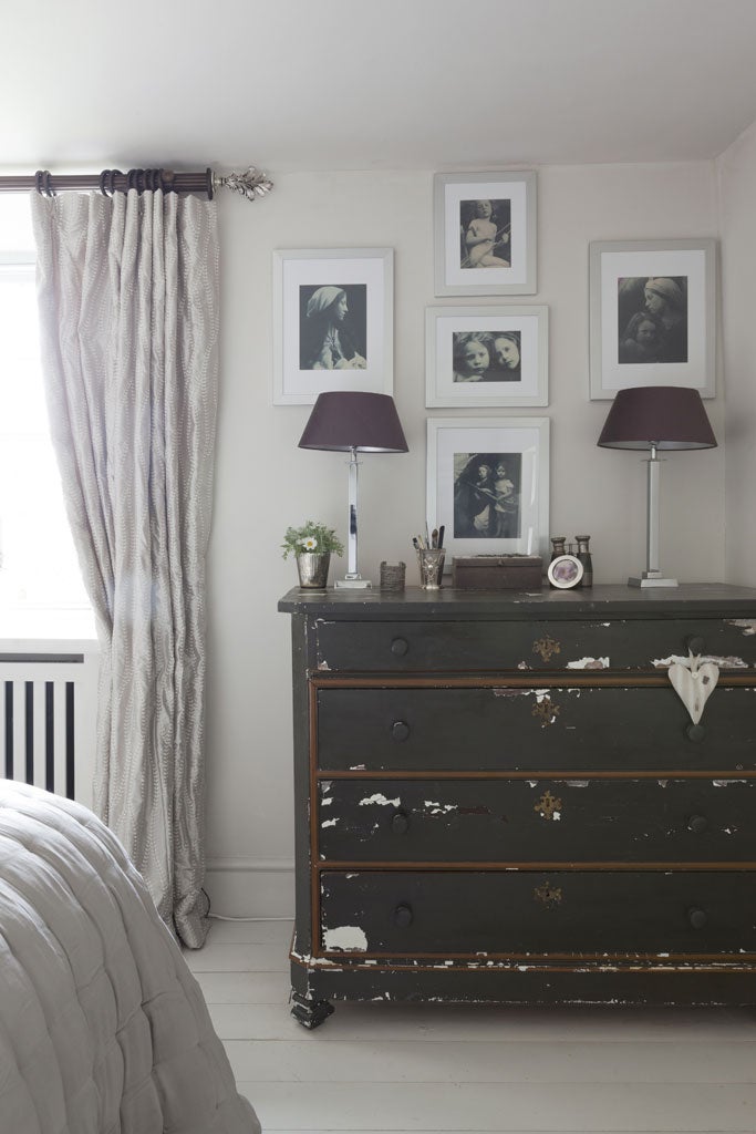 At the heart of the house is a wooden kitchen table, which she calls "the workhorse of the family". She has three daughters, who were brought up around it, eating meals, doing their homework. Above it hangs an outsized chandelier. "It's from a taller-ceilinged house and is quite large for the kitchen, but I love over-scale," she explains. When she moved in seven years ago, she also brought with her the portrait in her front-room, and the Georgian knife box below it, which is now "full of old letters". The portrait, she guesses, is 18th century. "I've had him for 40 years; he's definitely a companion who has always moved around with me."