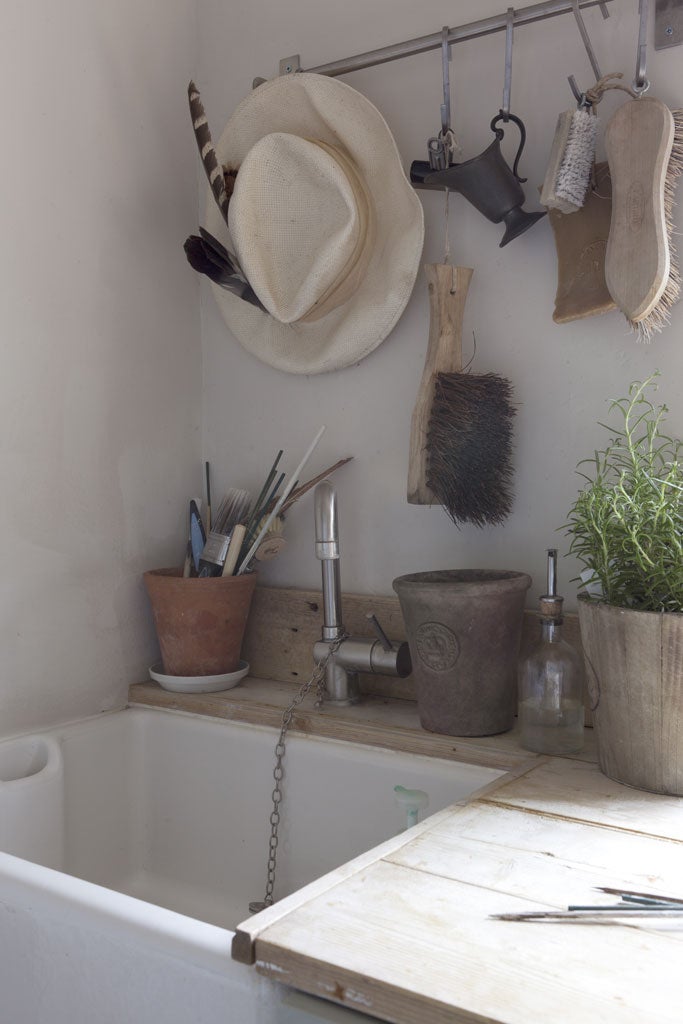 She lives in a late-Georgian house in a village outside Bath. It's a haven for the 64-year-old, who runs the Ivy House Design School in nearby Holt, and also travels the country offering a personalised interiors service. The spot she calls home has "fields all around. I like the quiet and the peace." That settled spirit is reflected in the décor, all pale shabby chic. It's not a large building (she took most of the doors out to add space), and the colour scheme helps keep it airy. "There is a harmony of colour going right the way through," Dunlop acknowledges. She mostly used one paint, called "Slate", a very light grey. "Everything is that colour – it loses the boundaries and increases the feeling of space. It has a light-reflecting quality, and it's a harmonious, calm colour.