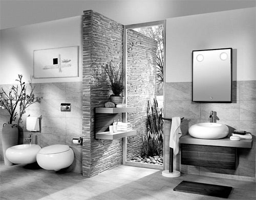 This room still needs to be functional, but now its design is taking a more organic form, making it a place in which to spend time. Curved baths are painted in muted colours. Natural materials such as wood and stone are being used, and showers are designed to mimic rainfall.