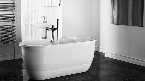 For a more affordable option, the Antribes free-standing bath from www.livinghouse.co.uk costs £890. It's made from mineral crystal and is ideal for a small bathroom as it is narrow but very deep, so you can still have that luxury wallow. Living House (01722 415 000) also has plenty of solid stone and resin baths to choose from, if you are determined to spend a fortune.