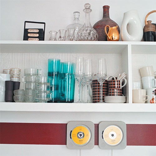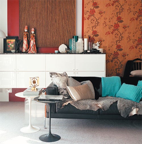 The wallpapered panels that appear throughout the flat were inspired by Ogundehin's work on Elle Decoration. "I'd always thought using wallpaper like this would be a fun idea and it was something I'd done on shoots. It was all about creating a composition using different patterns that complemented each other." Ogundehin's eclectic collection of art has also been put together with a view to each piece complementing the rest. A Gary Hume picture called The Cleric is hung with two less lofty paintings. "I bought them at Brighton flea market - I love them because they're traditional still lifes," she says. "I painted over the one on the bottom because I don't think the painter was very good at painting glass-wear and there was really bad glass in it." Even Ogundehin admits that she is a bit of a perfectionist about her flat: "I did freak out my electrician and plumbers quite a lot with my incredibly detailed plans," but as the editor of an interiors magazine and a trained architect, it's hardly surprising that she wants her flat to be just so.
