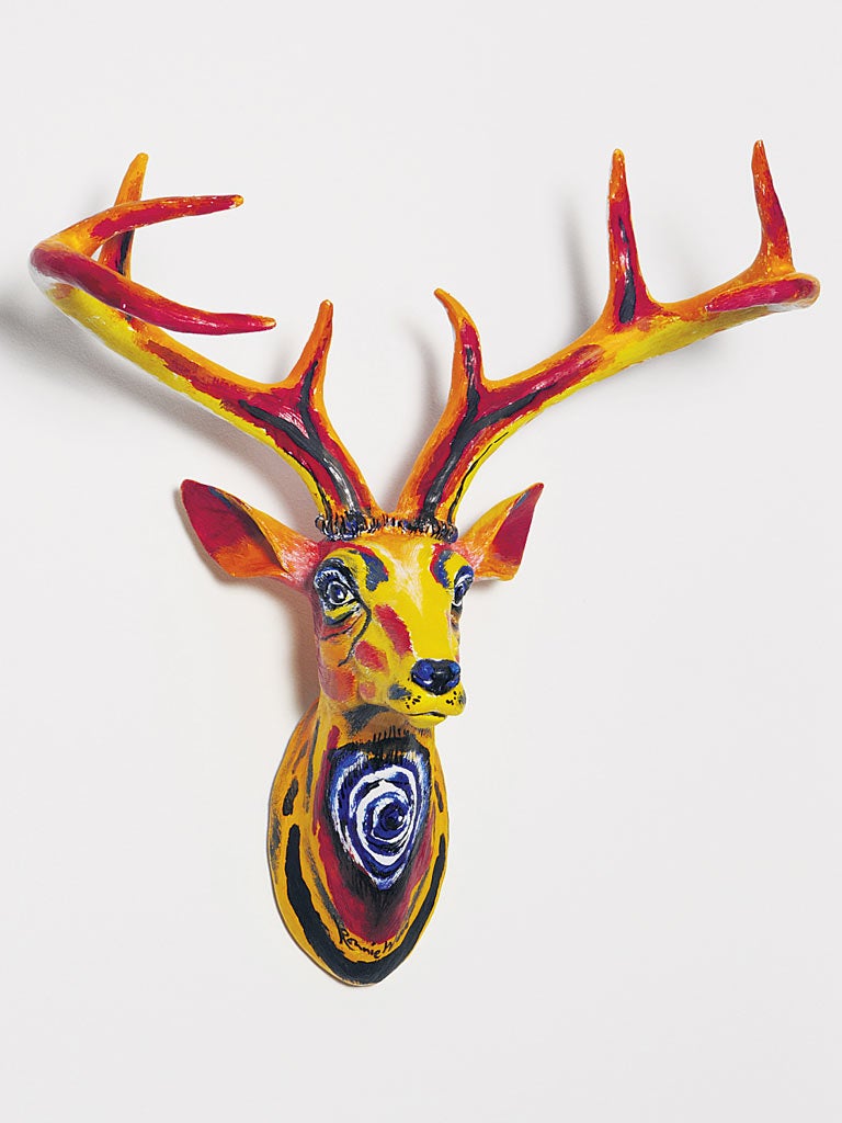 These stags' heads, made of resin (about the only material not yet mentioned), have been customised by 16 artists and designers, including royal favourite Issa designer Daniella Helayel, Ronnie Wood, Barbara Hulanicki, Manolo Blahnik, Rob Ryan and Lulu Guinness.
