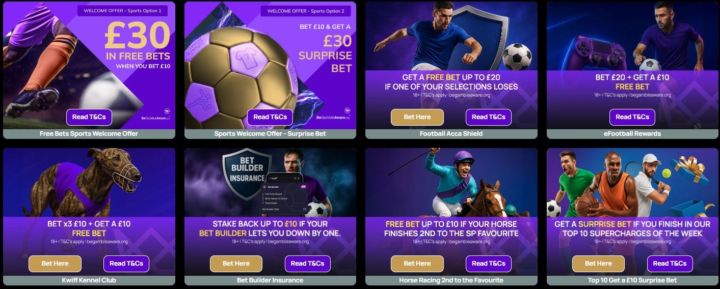 QuinnBet offers six daily free bet promotions, including money back on 0-0 football draws, horses finishing second to the SP favourite, acca bonuses and US sports-related offers.