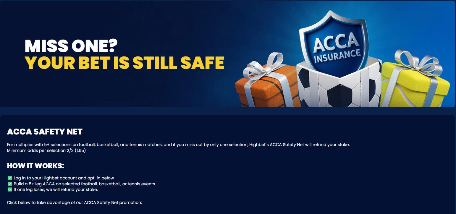 Bettors can also secure a £5 free acca bet each week by staking £5 or more on at least four accumulators between Monday and Sunday.