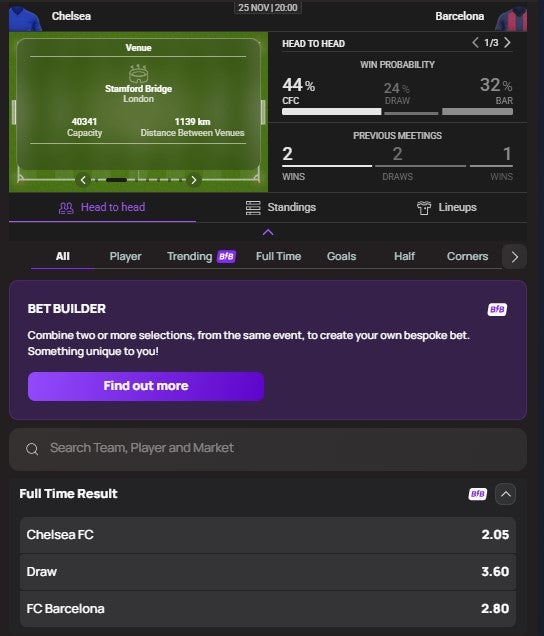 ✓ User-friendly, accessible and well-reviewed app | ✗ Smaller selection of football markets |