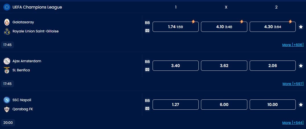 ✓ Biggest variety of Champions League odds we’ve seen |